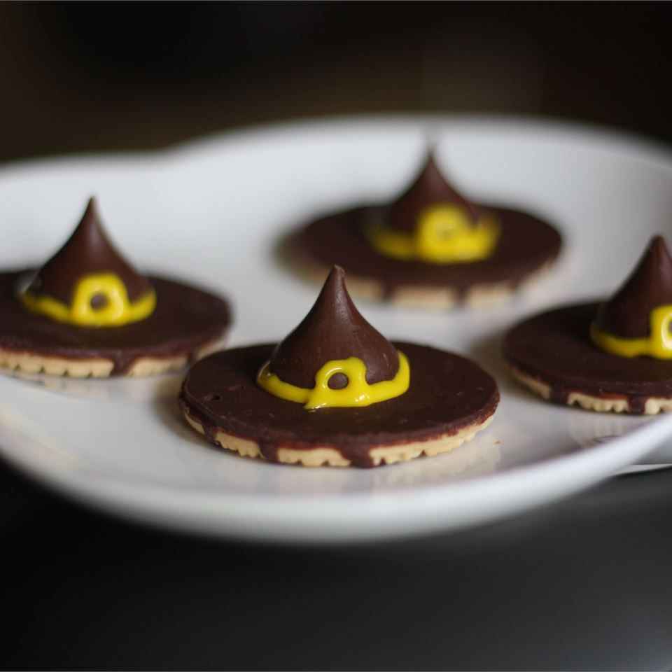 Witches' hats are cute and simple Halloween treats that everyone will love. The amount this recipe makes depends on how many cookies and chocolate kisses you have. It just depends on how many you want. The last time I made these, I ended up making about 140 or so.